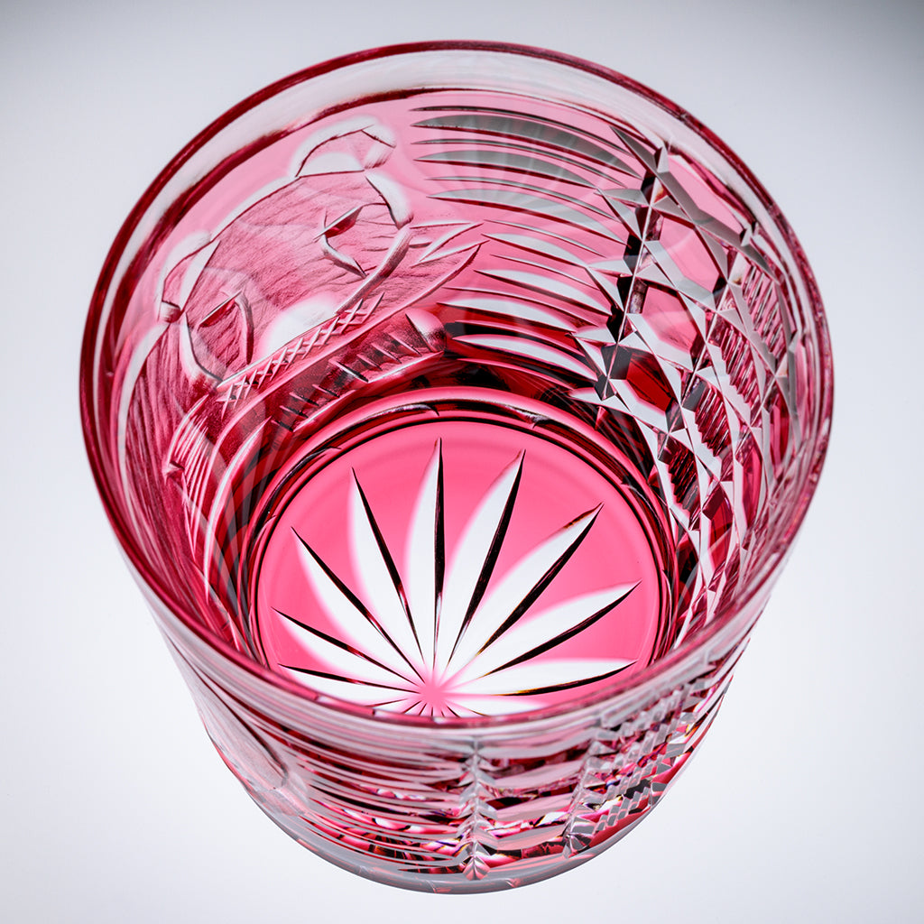 このグラスは、工場などから出た産業廃棄物の中から、金・銀・銅を取出し、小樽の老舗ガラス工房「深川硝子工芸」にて、職人の手でガラスに溶かし込んで作られています。
