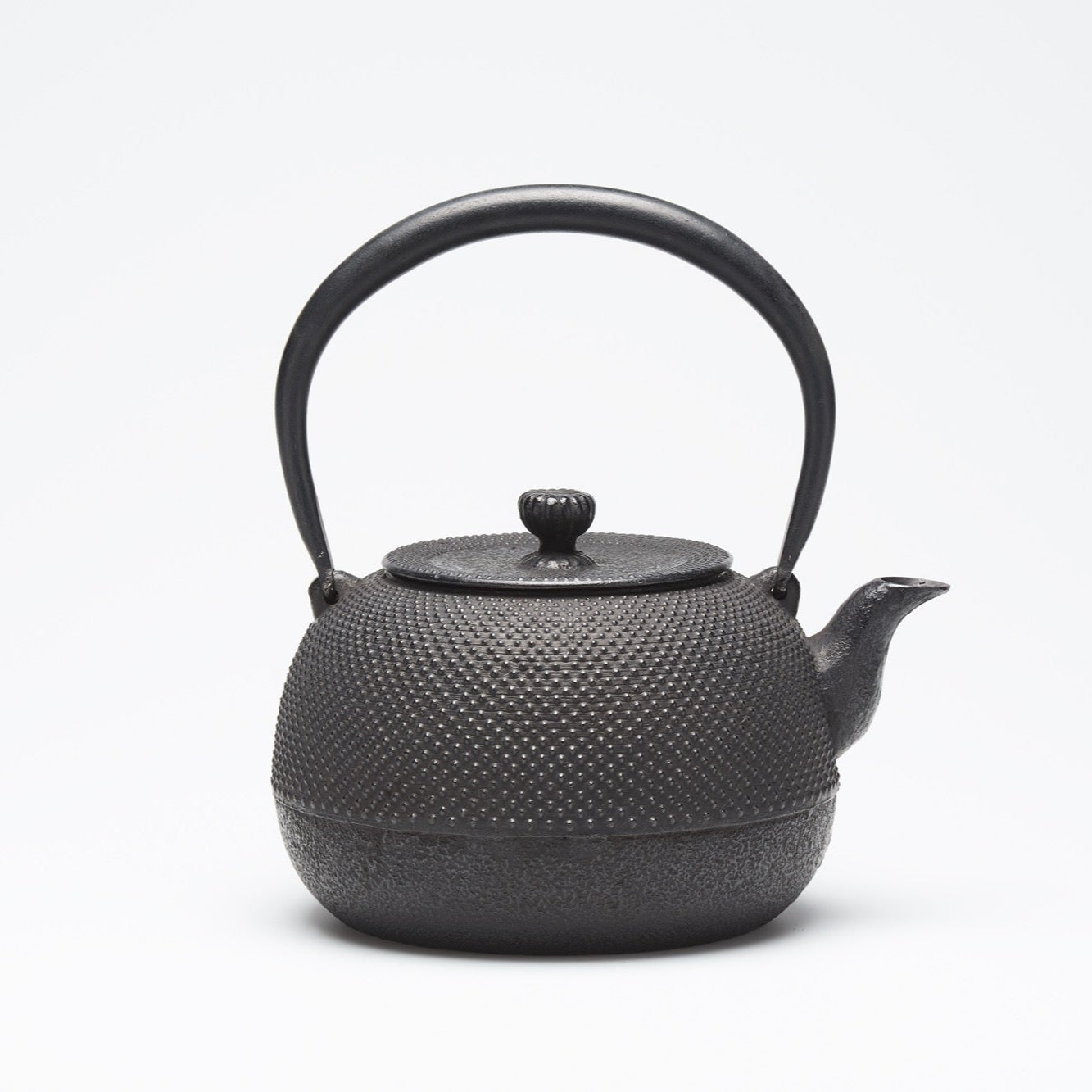 こちらの鉄瓶は珠玉型です。丸みを帯びた美しい形は幾つもの時代を超えてもなお愛され続けています。また霰模様は日本の伝統的な模様のひとつ。シンプルながらも洗練された美しさをお楽しみください。