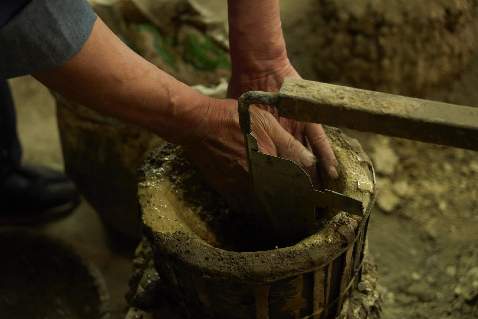 鋳造では、溶けた鉄(溶湯)を鋳型に流し込み、凝固して十分に冷えた後、尻型を開きます。次に、胴型のタガを外し、事前に筋目をつけた部分に沿って型を二つに割ります。こうして鉄瓶を取り出します。うまく割れれば、軽い手直しで鋳型を再利用できるのが「割型」の強みです。昔は毎回鋳型を壊していたため、型を一から作り直す必要がありました。「割型」の登場で、南部鉄瓶の生産効率は大きく向上しました。
