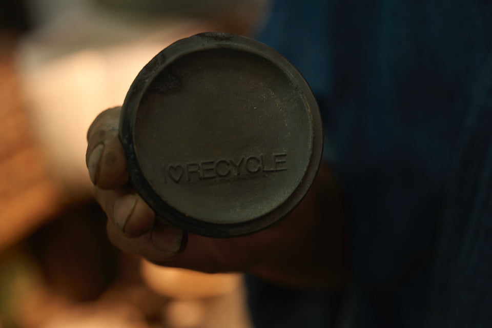 蓋の裏に刻まれた「I♡RECYCLE」の文字