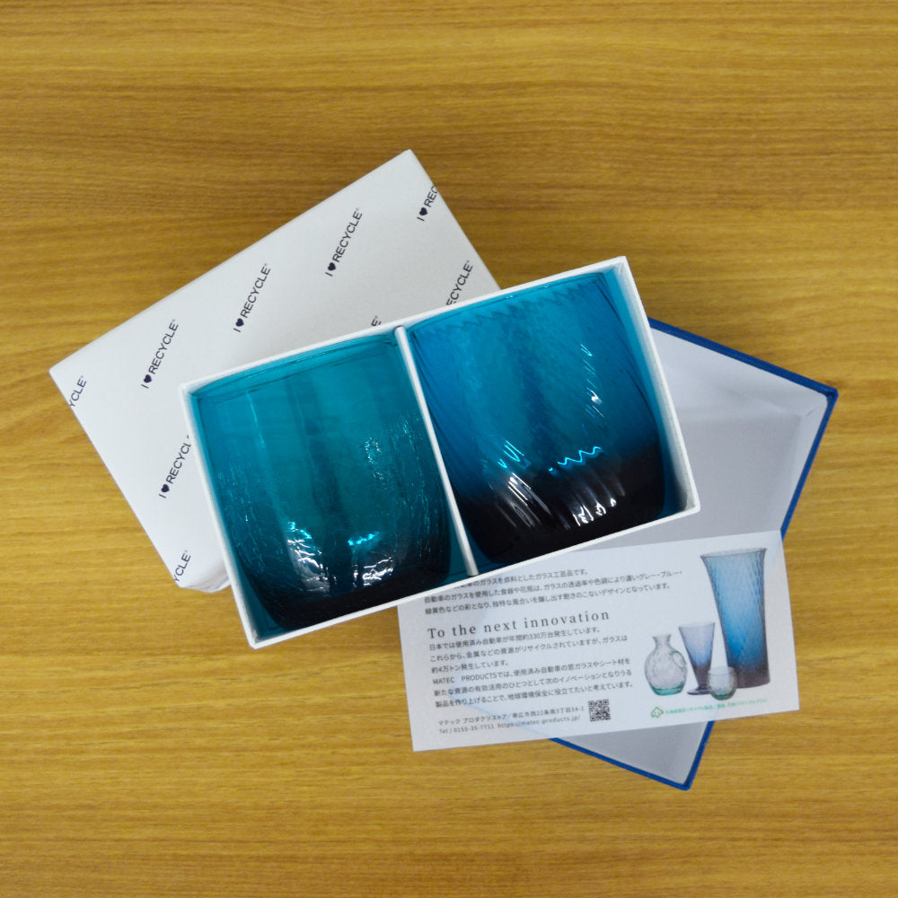 これまでは捨てられることが多かった車の窓ガラスと、同じく役目を終えた銅から生まれた深い青が、贈り物に“物語”を添えてくれます。