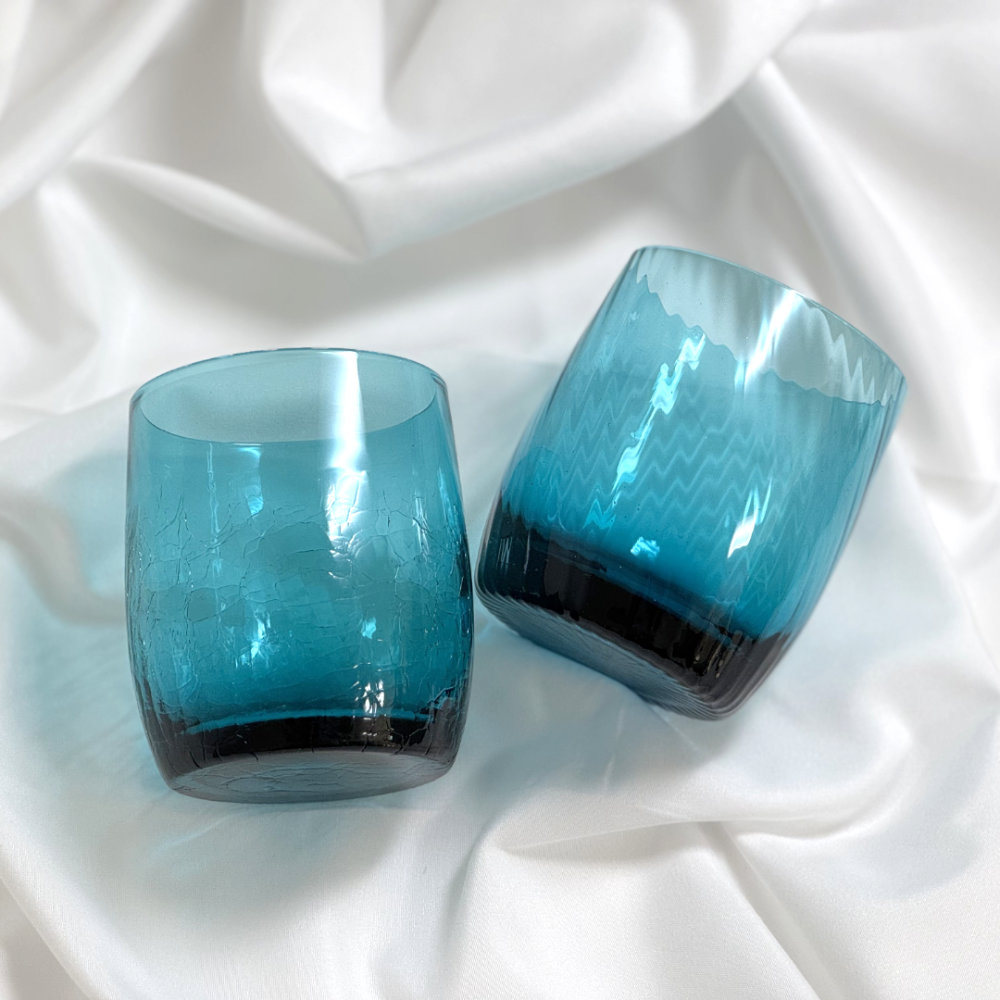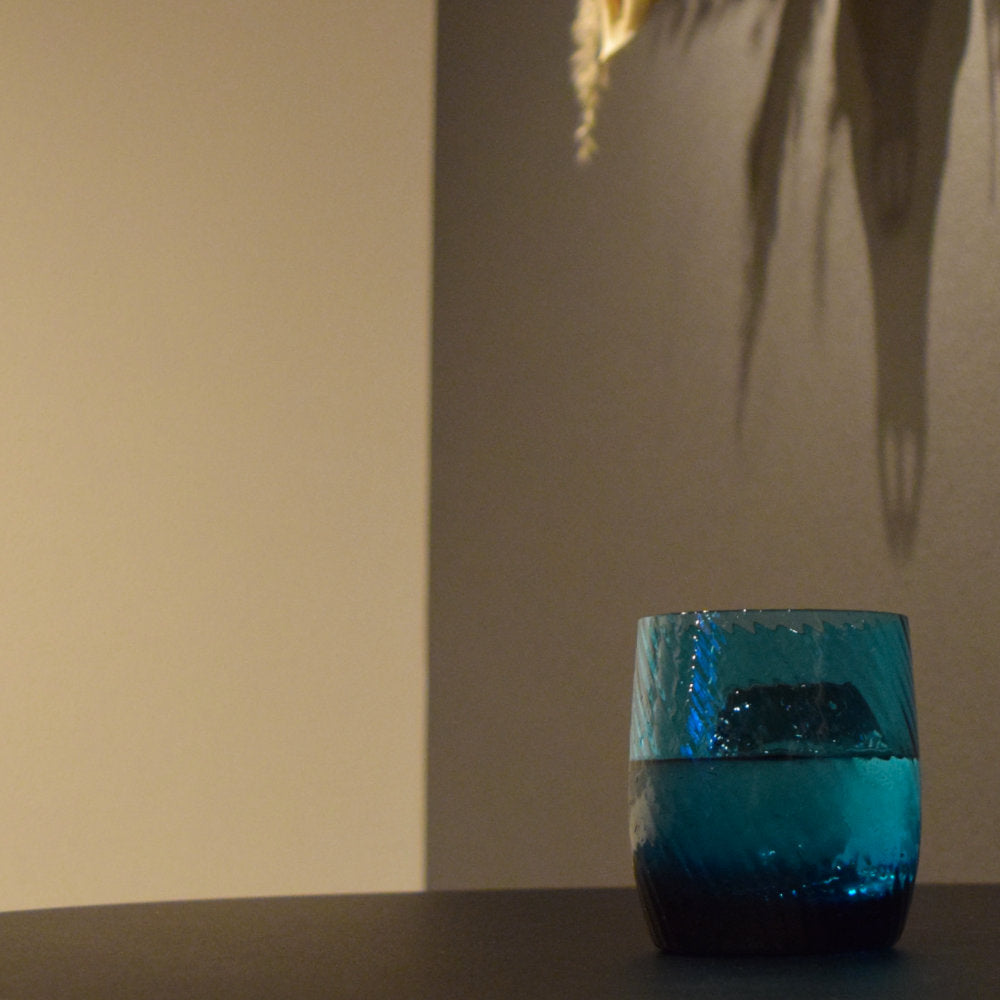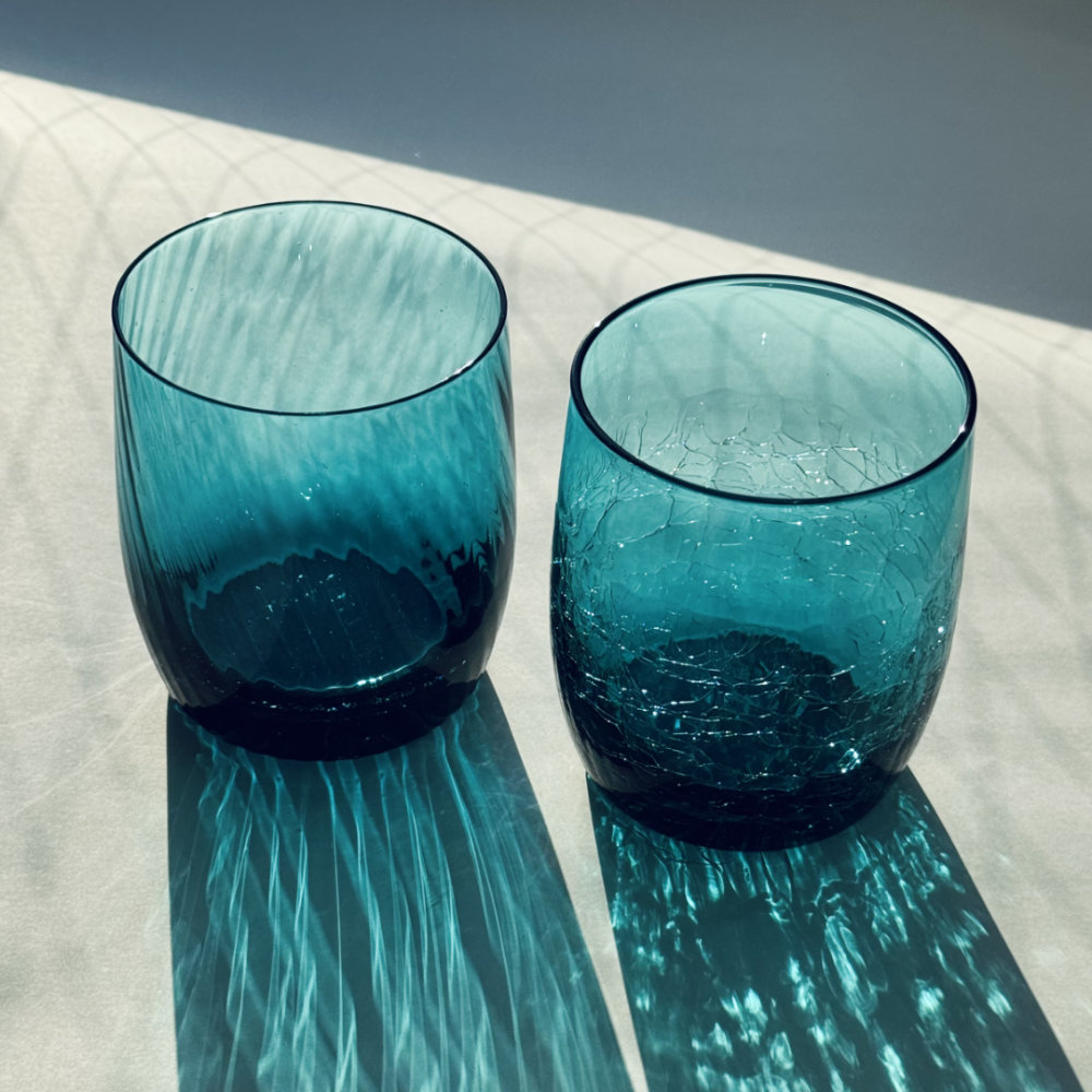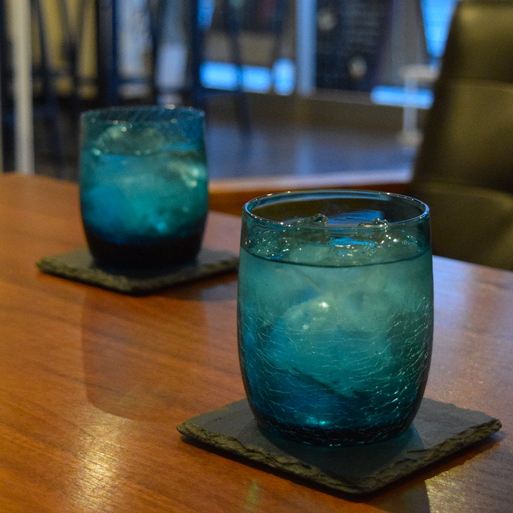深い青が氷越しに映えるので、ウィスキーやリキュールのロックで特に美しくお使いいただけます。食卓やくつろぎの時間には、ソフトドリンクにもよく馴染む万能なグラスです。